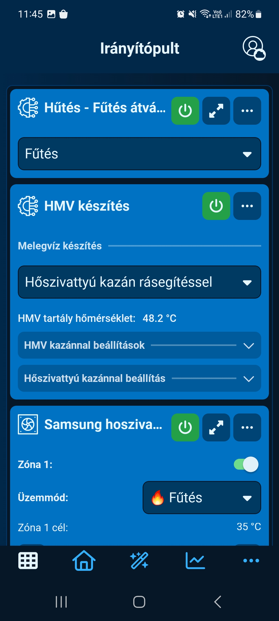 - Samsung hőszivattyú - képes a fűtési puffertartályt hűteni és fűteni, illetve használati melegvizet (HMV) készíteni a HMV tartályba
