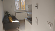Ez volt az elképzelés abban a lakásban is, ahol a lakás fűtési automatikáját valósítottam meg. Egy nagy lakást 8 pici apartman-ra osztottak fel, amelyek külön-külön kiadhatók. Minden szobában van egy pici fürdő, pici konyha-étkező-nappali, és egy galéria alvási célból, kihasználva a magas belmagasságot.